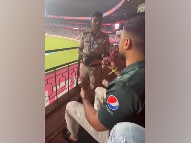 نوجوان کے ساتھ بیٹھا کوئ شخص  یہ ویڈیو بنارہا ہے جس  میں  بھارتی پولیس  اہلکار نوجوان کو منع  کرتا ہے کہ پاکستان زندہ باد  کا نعرہ نہ لگائے،اس پر  نوجوان اس سے کہتا ہے کہ پاکستان کا میچ ہورہا ہے، ہم پاکستان سے آئے ہیں تو پاکستان زندہ باد کا نعرہ نہیں لگائیں  گے کیا کہیں گے۔