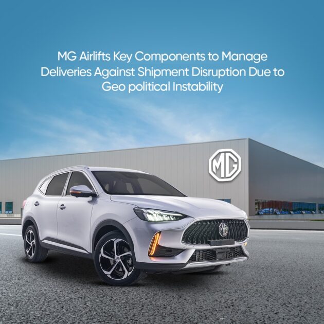 حالیہ علاقائی جغرافیائی و سیاسی صورتحال کے باعث شمپنٹ روٹس میں عارضی تبدیلیاں رونماہوئیں جس کے باعث کچھ رنگوں کی دستیابی اورمفت فراہم کیے جانے والے 7کلوواٹ کے چارجرز کی فراہمی میں معمولی تاخیر ہوئی۔ ان چیلنجز کے پیشِ نظر، ایم جی پاکستان نے مکمل استعدادکے ساتھ پراڈکشن شروع کرنے کیلئے فوری طورپر فضائی راستے سے ضروری کٹس اوراہم پرزہ جات امپورٹ کیے۔