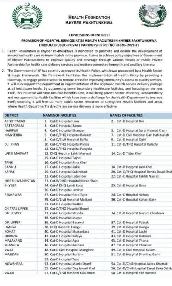 پشاور (ملک تنویر احمد)محکمہ صحت خیبرپختونخوا کی نجکاری والے ہسپتالوں کی تیار کردہ فہرست کے مطابق سب سے زیادہ پشاور کے 5 ہسپتالوں کو نجی ..مزید پڑھیں