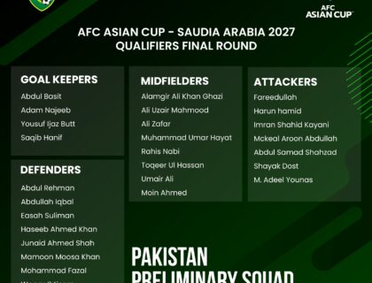 اسلام آباد (سید جاوید حسن شاہ) پاکستان فٹبال فیڈریشن نے اے ایف سی ایشین کپ 2027 کے کوالیفائرز میں قومی مینز ٹیم کی شرکت کی ..مزید پڑھیں