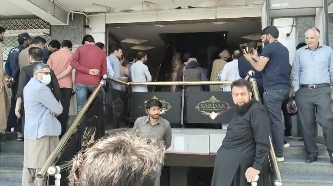 A large number of protestors gathered and marched toward ‘Sardar Plaza,’ chanting slogans against Sardar Tanveer Ilyas. Tensions rose as some protestors attempted to enter the building, but they were stopped by security personnel. Following the standoff, the protestors staged a sit-in at the main entrance of the plaza.